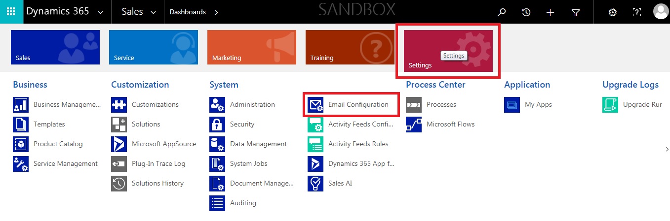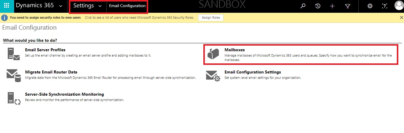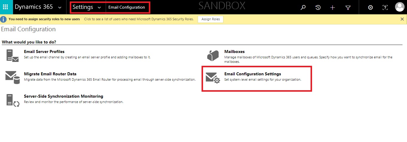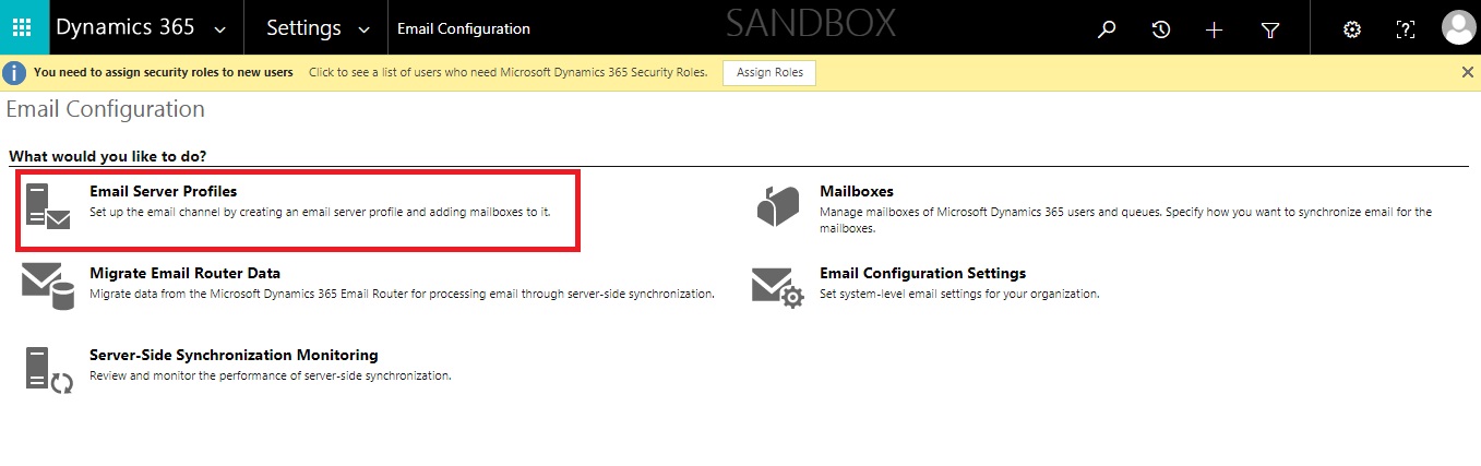 a. Go to Settings –> Email Configuration –> Email Server Profile.