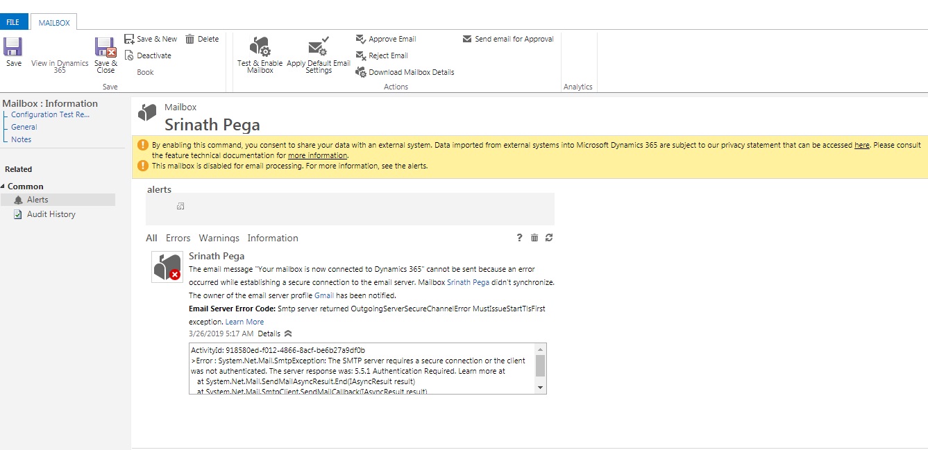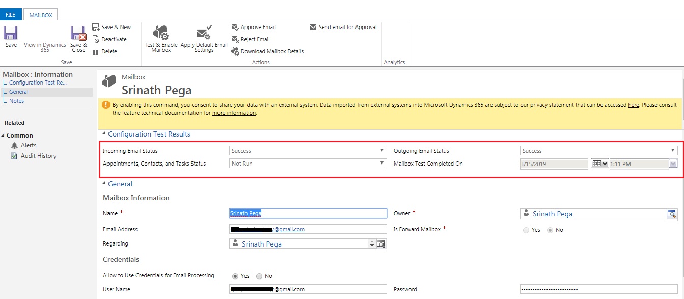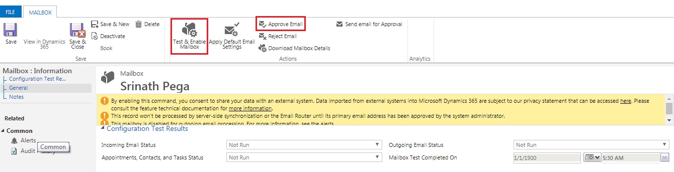 b. After enabling again go to mailbox and Click on Approve Email and Test & Enable Mailbox.
