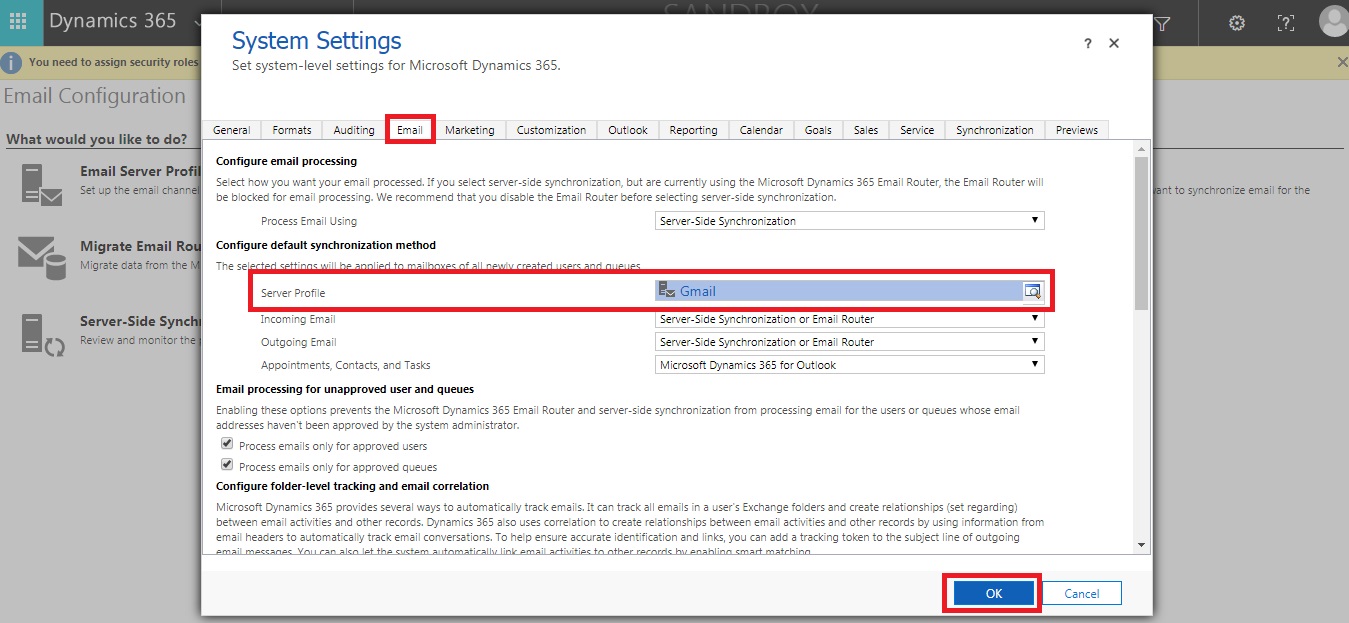 Step 2: Go to Email Configuration settings and then change Server Profile.