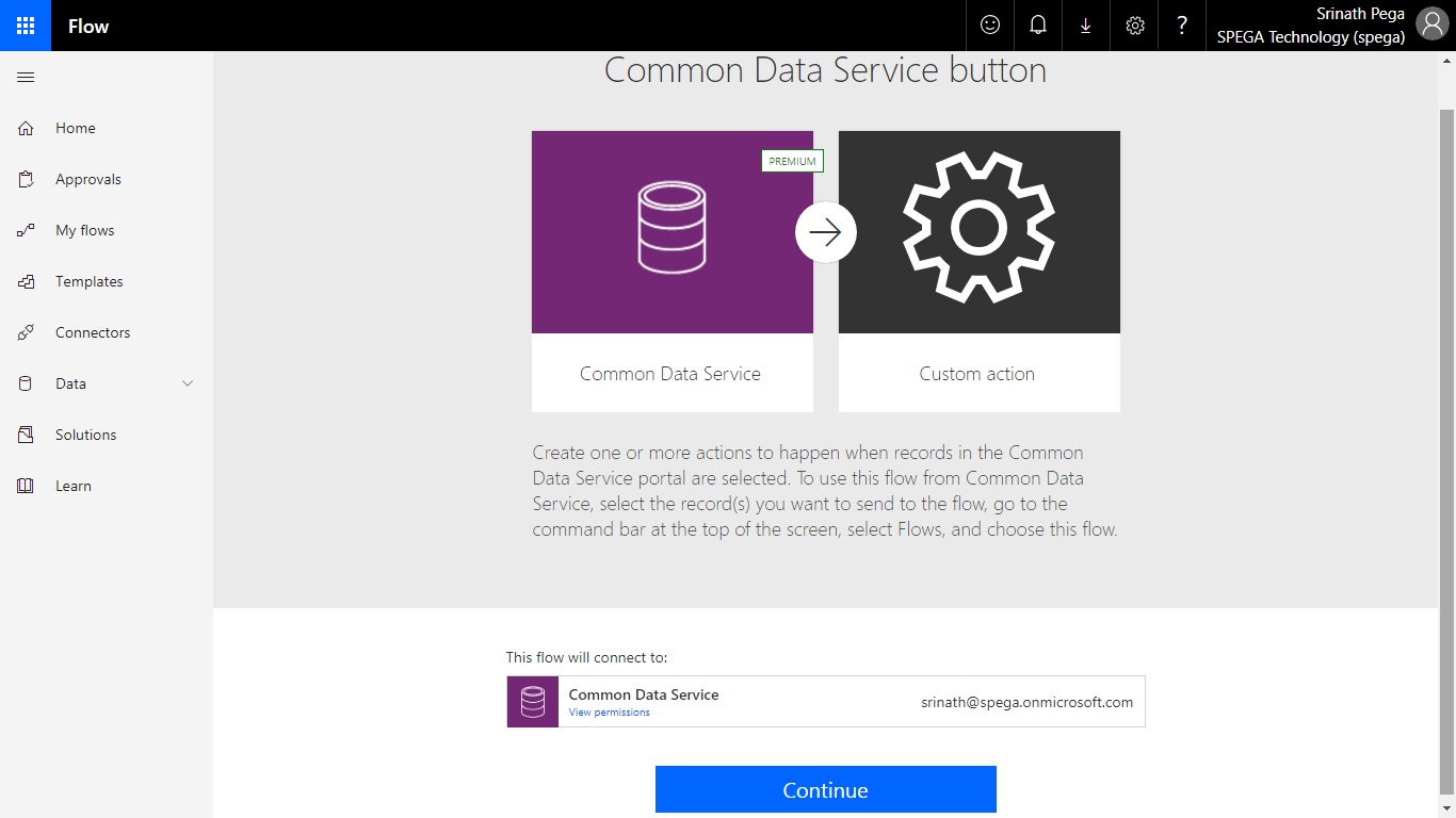 2. Click on Create a Flow button there and login to Flow with your office 365 credentials.