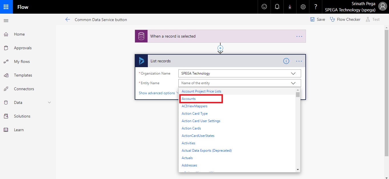 9. Now go back to D365 and check if our flow is there. It should be in Flow fly out button over Account entity.