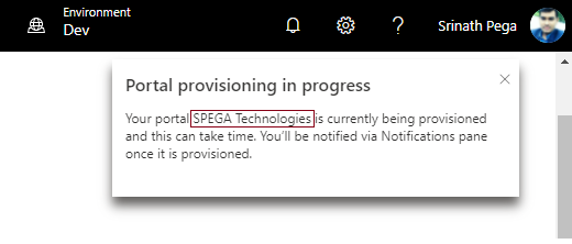 5. Power Apps Portal ( SPEGA Technologies) is beging created, its takes 2-25 min to provision.