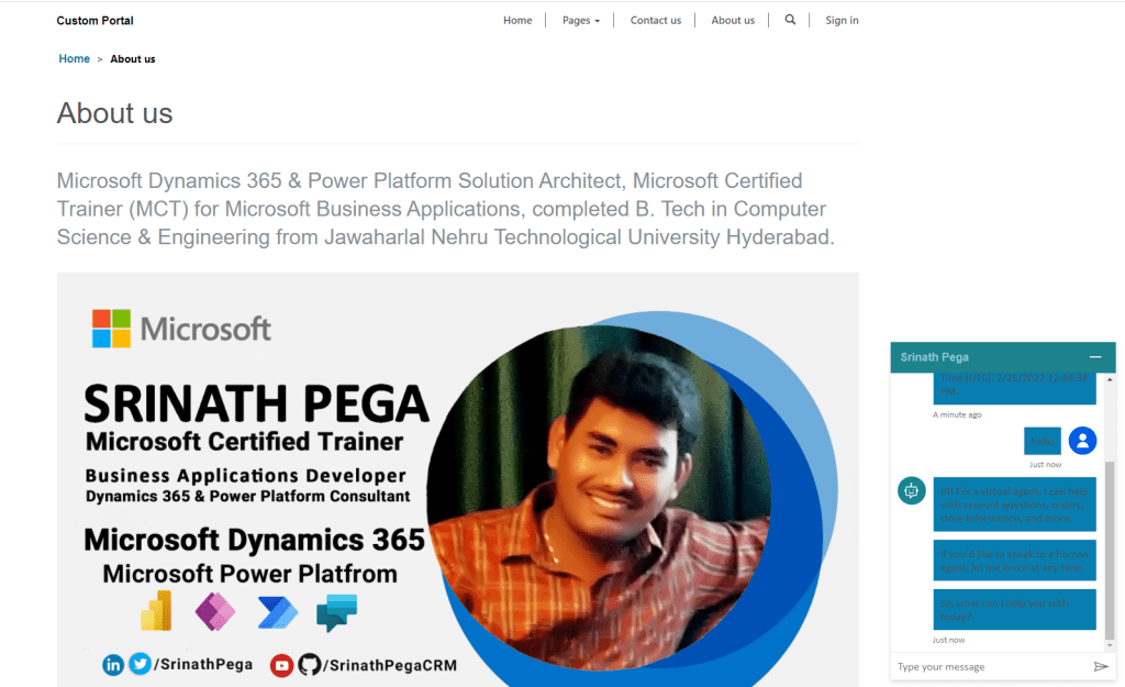 | ChatBot | To embed a Microsoft Power Virtual Agents bot onto the portal page. |