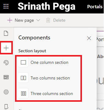 6. Now to add section layouts to web page click on Compnents on left pane Tooolbelt in Portal studio.
