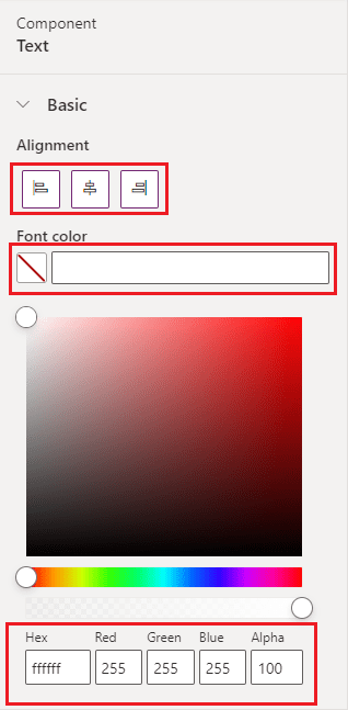 - Alignment: Select whether the text must be left, center, or right aligned.
