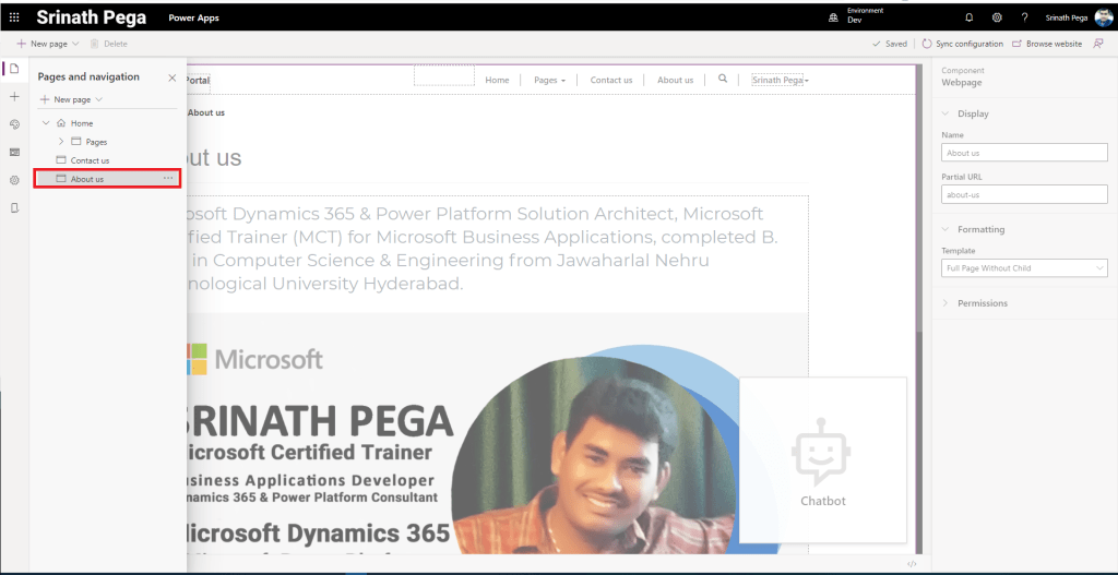- Open the Power Apps Portal in edit mode in Portal Studio.