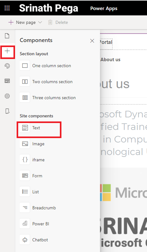 Power Apps Portal we have a Text Site Component to add the static text to the Web Page.