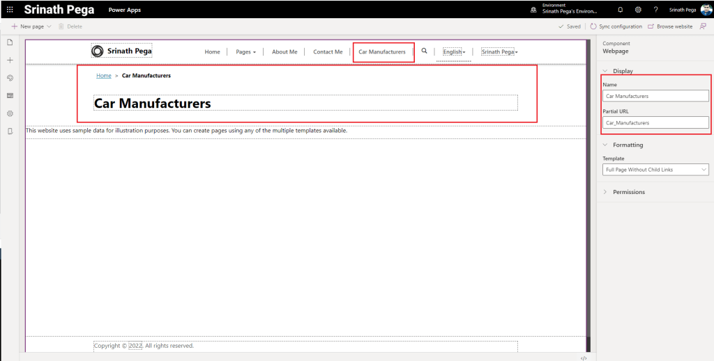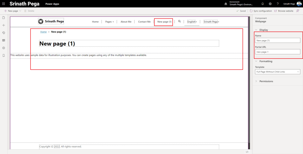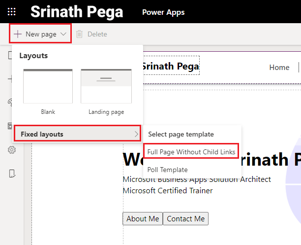 5. By selecting the Page Layout, the Web Page will be added to the Portal.
