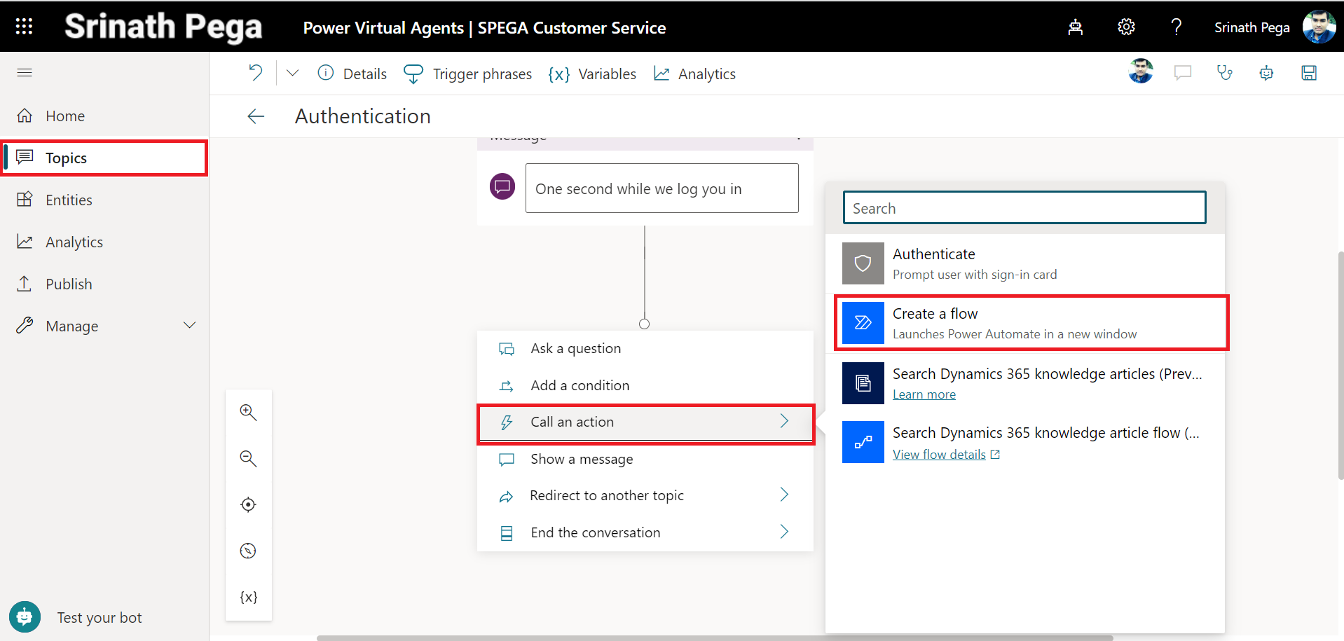 The user has logged in to Power Virtual Agents , Power Automate to pass that