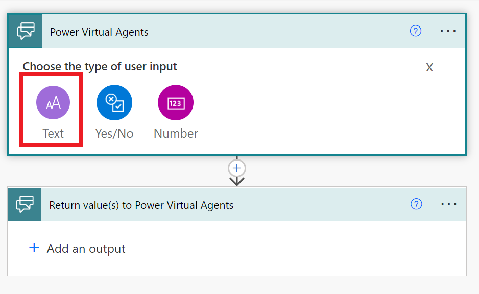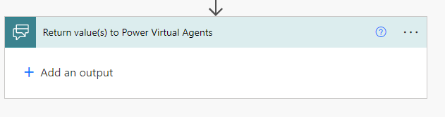 14. Click on the Return value(s) to Power Virtual Agents action to open it up, and click on Add an output.