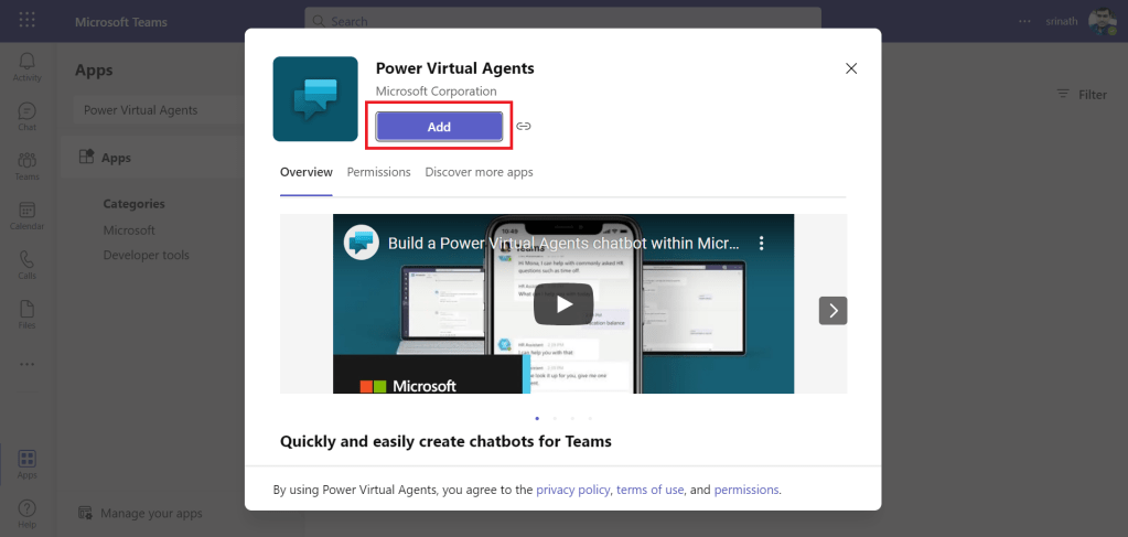 In this blog, will be on how to add the Power Virtual Agents App to Microsoft Teams.