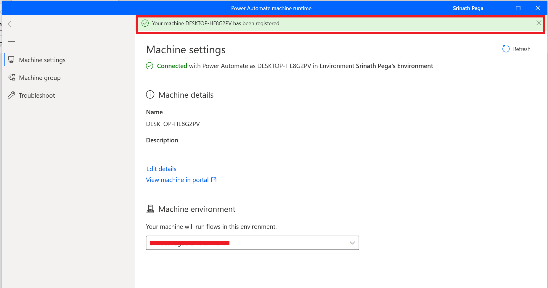 4. it will open the Power Automate machine runtime app. and the environment will auto register with the system.