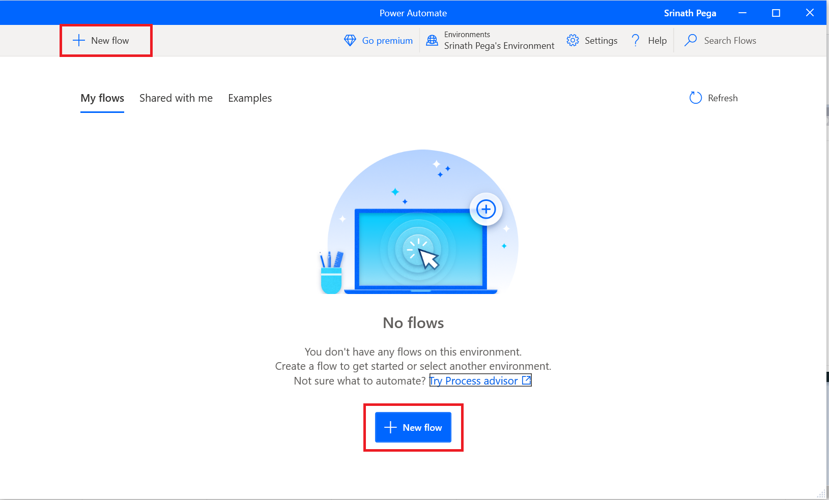 3. Click on New flow to create a new Power Automate Desktop flow.