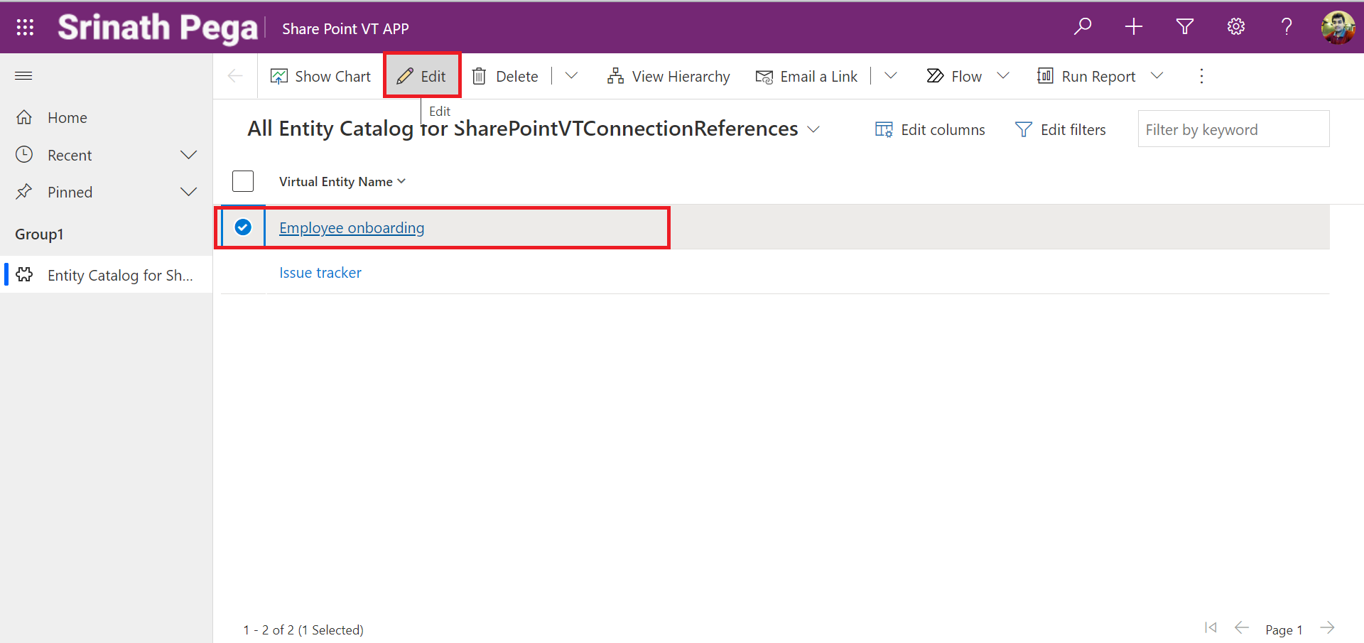 8. Select the Sharepoint list and Click on Edit.