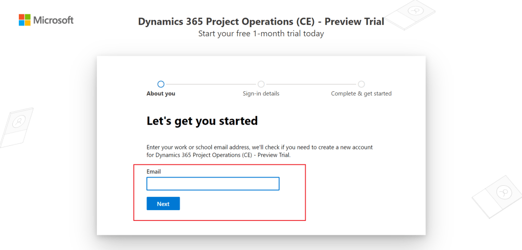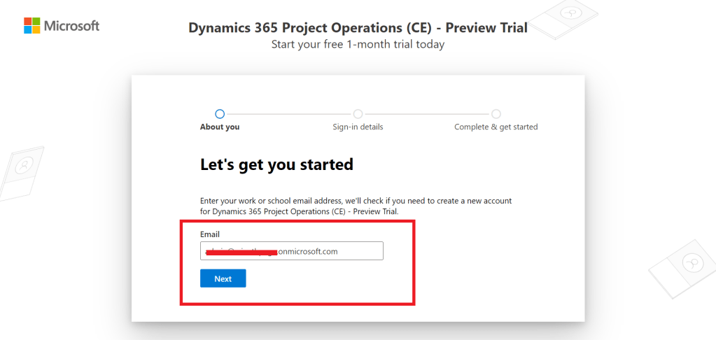 NOTE: The user who deploys the Project Operations (CE) – preview Trial must have Azure tenant global administrator rights. You can create a tenant during the first offer redemption. The user who deploys the preview must have Azure tenant global administrator rights.