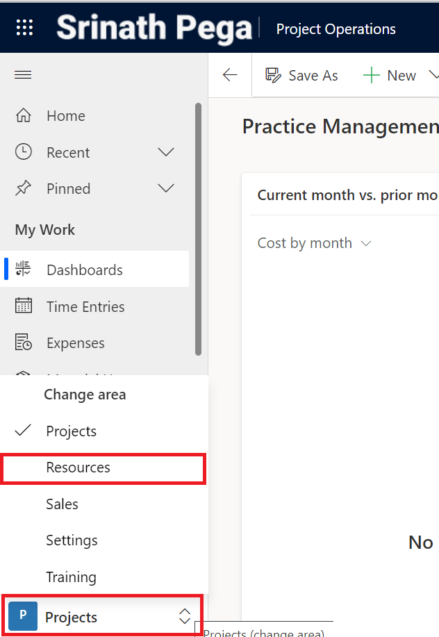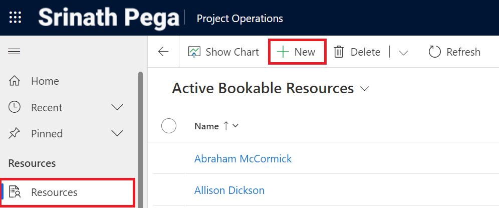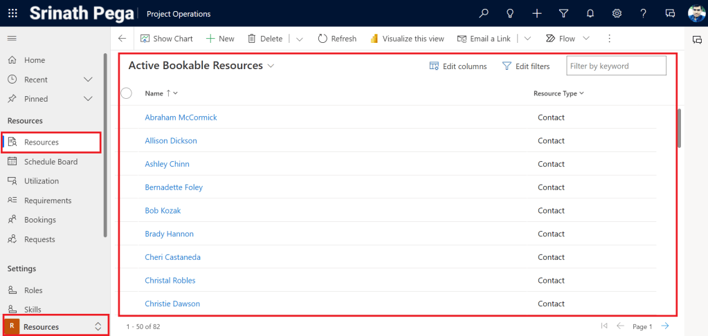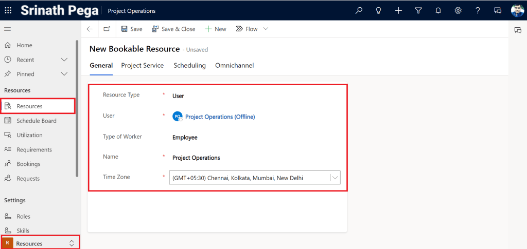 - Resources Type by default selected as a user and Select the user for Dynamics 365 Project Operations user.