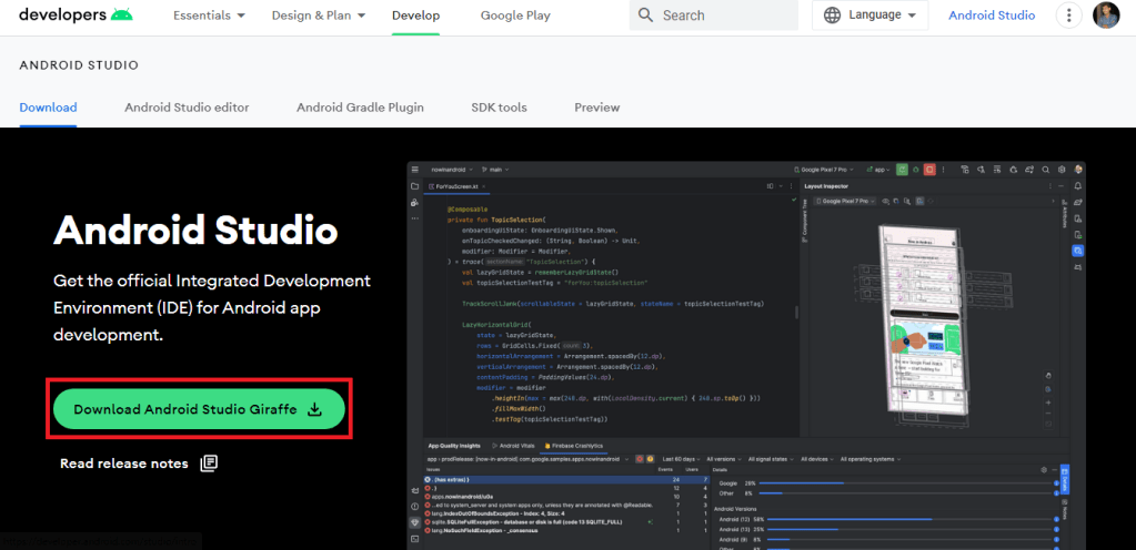- Go to Android Studio and download.