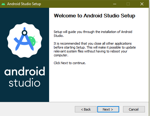 2. Run the Android Studio setup file and click on Next.