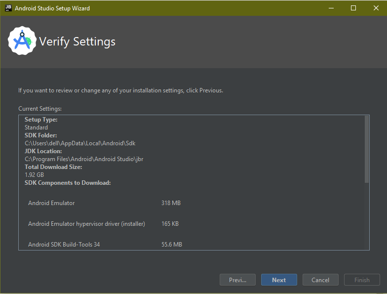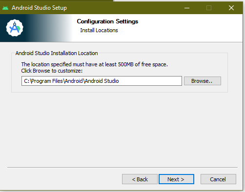 4. This is the directory Andriod studio will install and click on Next.