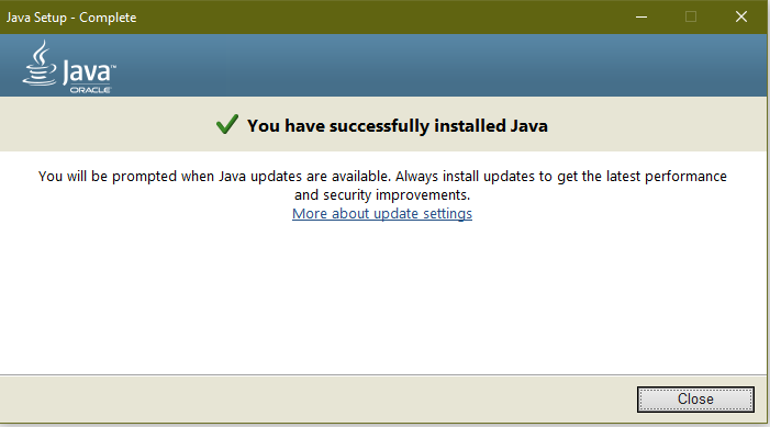 3. Java installer Takes a few minutes to install Java.