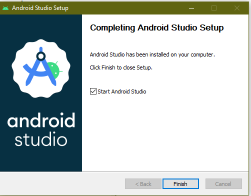 8. Click Finish to Open Android Studio.