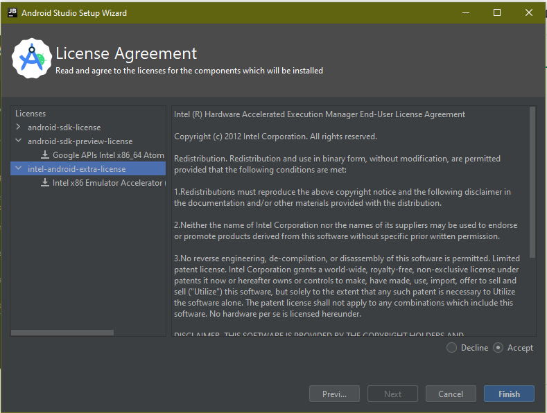 13. Accept the license agreement and Click finish.