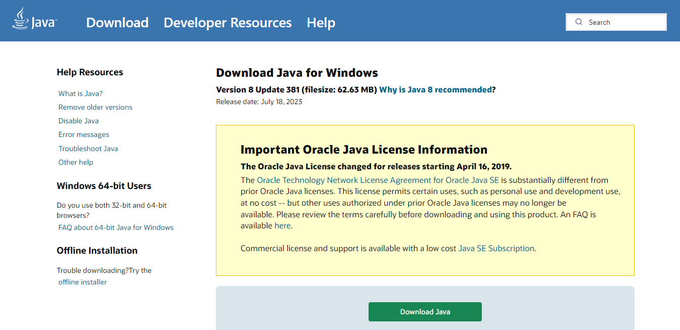 - Go to Java Download.