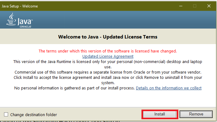 2. Click on Install to install Java into the system.