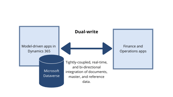 Dual-write addresses these challenges with a tightly coupled integration. It is real-time and synchronous. This integration allows business processes to flow seamlessly between the front office (CRM) and the back office (ERP).